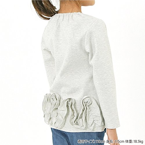 ☆ママとおそろい♪リンクコーデ☆ボリュームたっぷりの裾フリルがポイントのプルオーバー♪着たときのシルエットもとってもガーリーで可愛いです!デザイナーおすすめアイテム☆同じ素材・お値段で、ママサイズもご用意しています♪気軽にリンクコーデを楽しんで☆