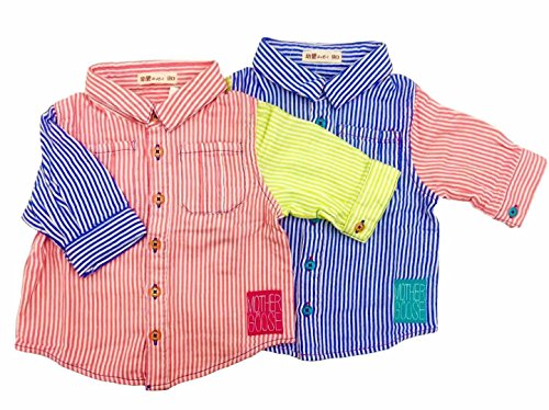mother goose こども服 男の子 シャツ ストライプ 7分袖 色切り替え 春 秋(80cm/90cm/100cm/110cm) (80, レッド)[K025]