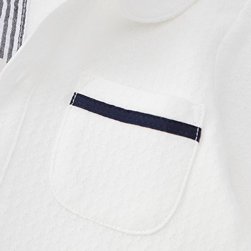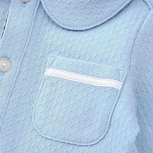 シンプルなメリヤス素材のブラウスは、女の子・男の子兼用のアイテムです。胸ポケットのテープ使いもさりげないおしゃれなポイントです。合わせやすいオフホワイトと爽やかなブルーの2色をご用意♪
