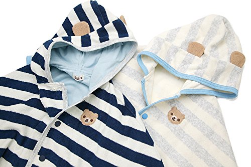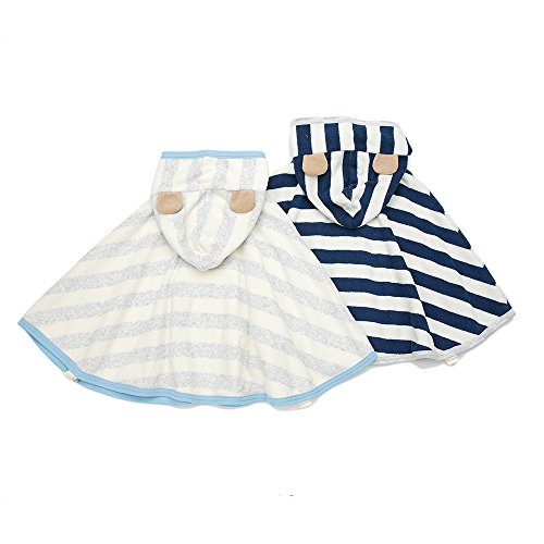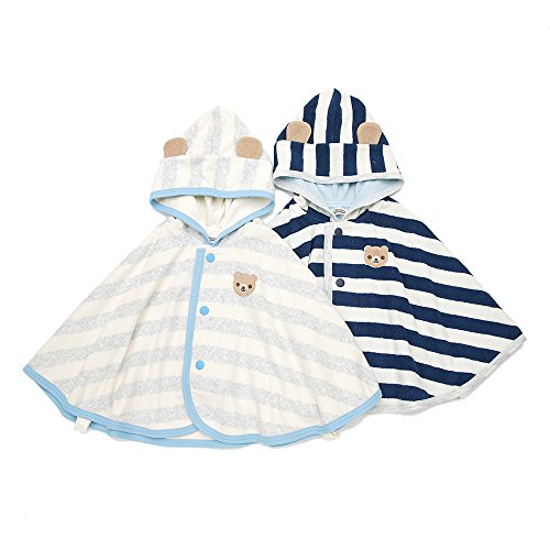 ボーダー柄が男のコにぴったりなパイルポンチョ♪柔らかい素材で、日差しや冷房対策、どんなシーンでも使える便利アイテムです☆耳つきフードでくーたんに変身♪♪