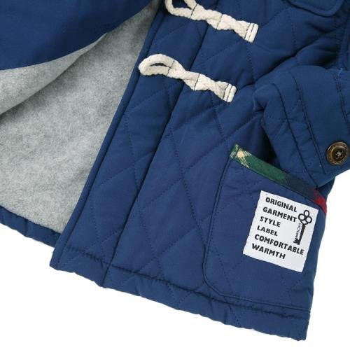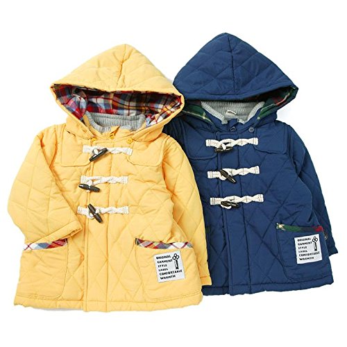 男の子にも女の子にもおススメ!!ぬくぬく中綿キルティングのダッフルコート♪さりげなく見えるフード裏やポケットのチェックが可愛い、ベーシックアイテムです☆