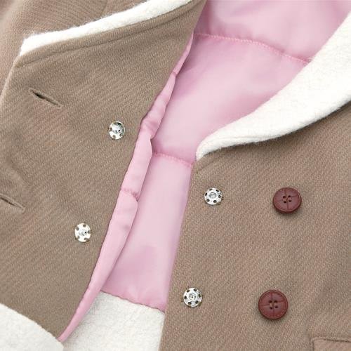 - 素材:本体表地/ポリエステル95%・レーヨン4%・ポリウレタン1% 衿・裾切替・袖切替/レーヨン60%・毛40% 裏地・中綿/ポリエステル100% フリース起毛×ブークレー