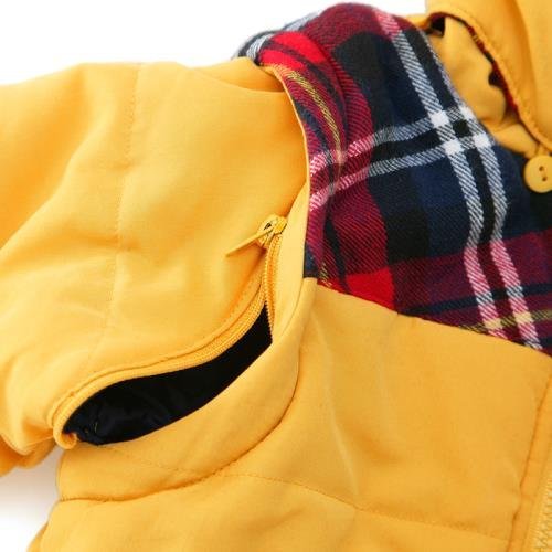 - 素材:本体表地・フード表地・裏地・中わた/ポリエステル100% 編みリブ・チェック柄部分/綿100% ポリエステルタフタピーチ×フリース(身頃裏地)×タフタ(袖裏地)×リブテレコ