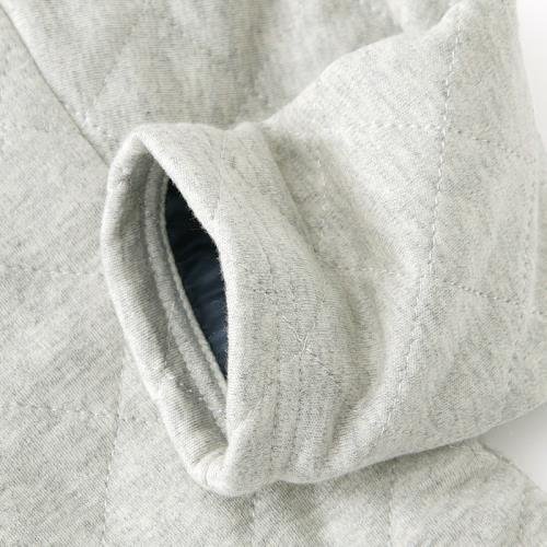 - 素材:グレー本体表地/綿100% ブラック本体表地・ボーダー柄部分/ポリエステル65%・綿35% 袖裏地・中綿/ポリエステル100% グレー/スムース×裏毛(身頃裏地)×袖裏用タフタ(袖裏地) ブラック/ジャガード×裏毛(身頃裏地)×袖裏用タフタ(袖裏地)