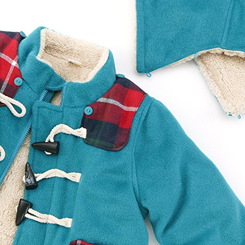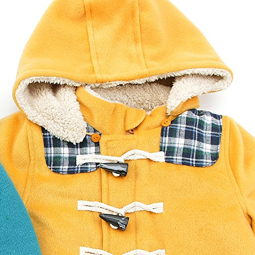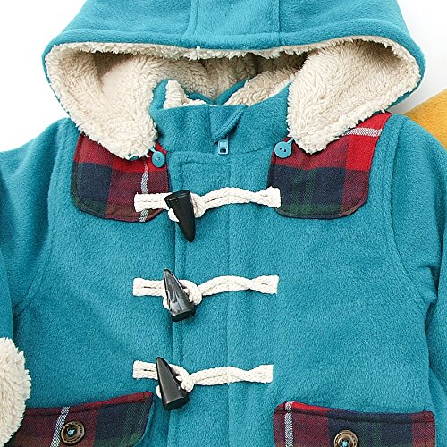 ダッフル釦が可愛いコートは男の子にも女の子にもおススメの一着☆さりげなく見えるフード裏やポのチェックが可愛い、ベーシックアイテムです♪♪