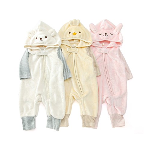フード部分が動物の顔になっている後姿もとってもキュートなジャンプスーツが登場。フードをかぶれば動物に大変身できちゃうアイテム◎柔らかなソフトフリースを使っているので着心地も抜群☆見た目がキュートなので、ベビーのギフトにもおススメの商品。