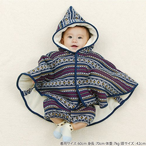 大人気♪ノルディックジャガード素材のマント☆50-80サイズでギフトにおすすめ♪とんがり帽風フードがかわいい◎