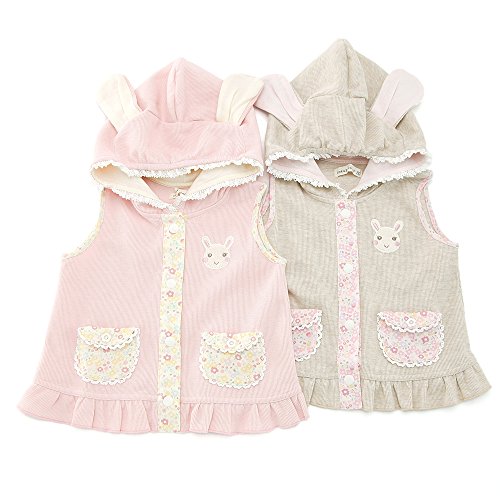 フードにうさみみが付いたベストは、着るとたちまちうさぎちゃんになれちゃう人気アイテム♪前立てやポケットのお花柄がカラフルでキュートなポイント☆