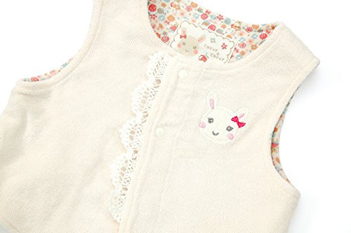 オールシーズン使えるパイルと小花柄のリバーシブルベスト゚☆*。ラブリーなレース使いやうさぎちゃんアップリケがかわいらしい*。♪まだまだ肌寒い春先の体温調節に、とっても便利なアイテムです*。☆