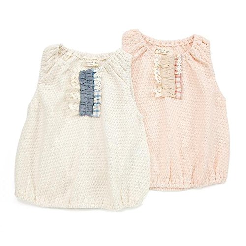 胸元のふりふりフリルが女の子らしいデザインポイント*。♪お着替えが簡単なかぶりタイプのベストは、肌寒い春先の体温調節に重宝します゚☆*。