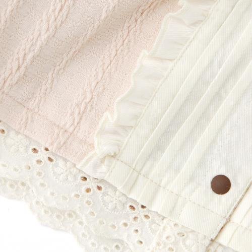 - 素材:表花柄布・裏前切替・裾レース部分/綿100% 裏地・表ヨーク・ポケット部分/綿98%・ポリウレタン2% ツイルピーチ×ジャガード天竺×綾コードレーン×カットワークレース