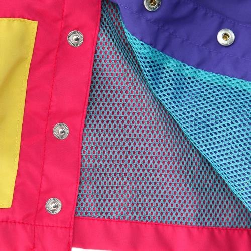 マルチカラーの「ド派手かわいいベスト」は、フロントがスナップボタンで着脱が楽チン♪裏地はメッシュになっているためサラッと重ね着OK!小さくたためるので持ち運びにも便利っ!