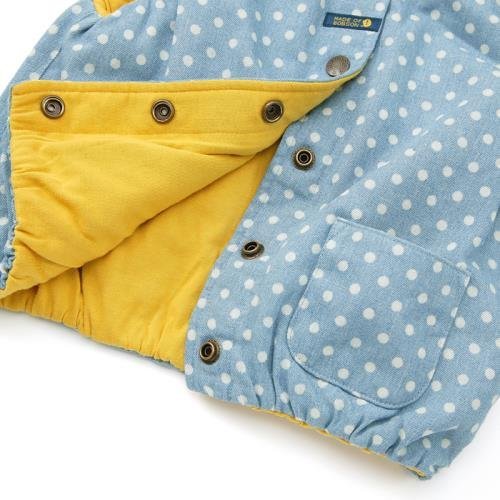 - 素材:表本体・衿/綿58%・レーヨン23%・ポリエステル19% 裏本体/ポリエステル65%・綿35% 中わた/ポリエステル100% デニム×T/C天竺(裏)