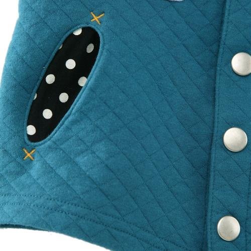 - 素材:共通・・・本体・フード生地(表面・裏面)/綿100%、本体・フード生地(中わた)/ポリエステル100%、胸ポケット・ドット柄部分/綿100% カラシ袖口・衿部分/綿99%・ポリウレタン1% グリーン袖口・衿部分/綿89%・ポリエステル7%・ポリウレタン4% ニットキルト×スパンテレコ