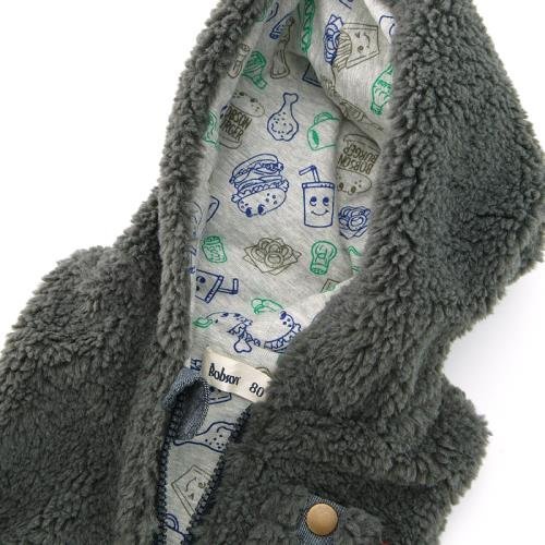 裏地のファーストフード柄がとってもかわいい♪ふんわりとやわらかなボアを使用したベスト♪いつものお洋服にさっとプラスできる手軽さと、着まわしも抜群のアイテム!外出着としても活躍しますが、室内での体温調節にも重宝します☆