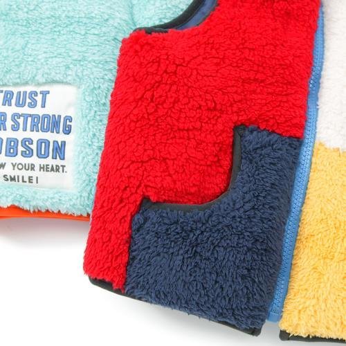 ふんわりボアの中わた入りベストです☆ライトな着ごこちなのにしっかりあたたかい冬仕様♪♪カラフルでポップなクレイジー配色が冬のオシャレを楽しく演出してくれます♪