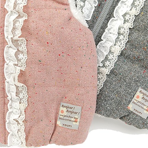 カラフルなネップが混ざったツイード素材と裏側の総ボアが絶妙な組み合わせ!ギャザーのたっぷり入ったレースをプラスしてママも欲しがる大人可愛いアイテムに♪