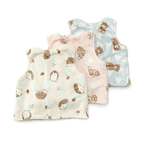 肌触りの良いソフトフリース素材を使った温かなベストが登場!はりねずみ・うさぎ・くまの可愛らしい総柄プリントがとってもキュートなベストです(*^-゚)vィェィ♪