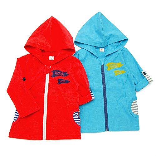 UV加工がされているパーカーは子供を日差しから守ってくれる夏のマストアイテム゚*☆シンプルな中にボーダー柄がちらり♪合わせやすいパーカーは1枚持っているだけでさまざまなコーディネートを楽しめます♪袖にはロールアップ可能なベルト付き☆綿100%☆