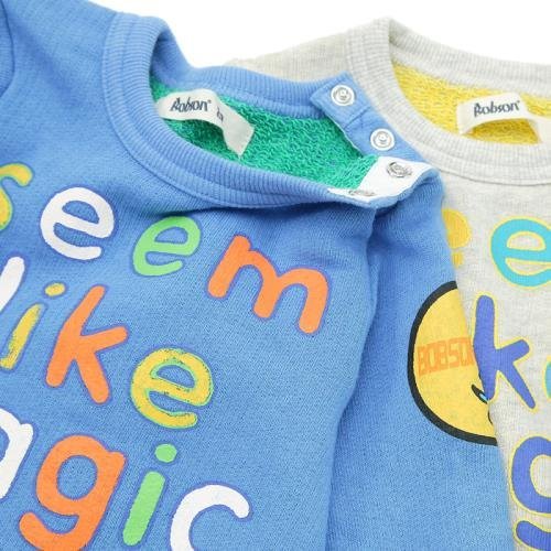 カラフルなロゴが目を引くトレーナー☆厚すぎず薄すぎない素材は春先にぴったり♪本体は綿100%なので着心地もよく、元気な男の子&女の子にぜひオススメの1枚です。