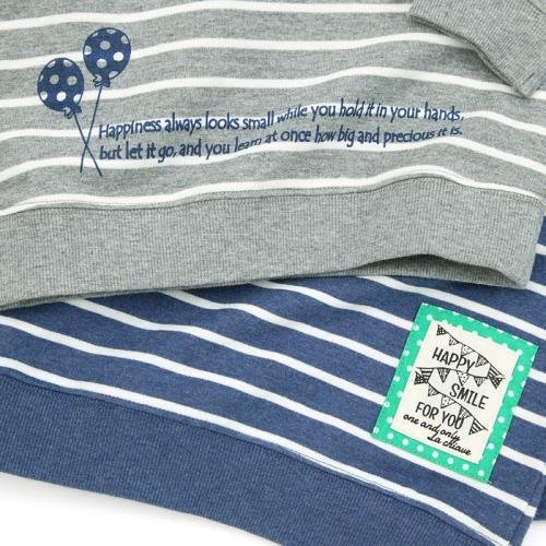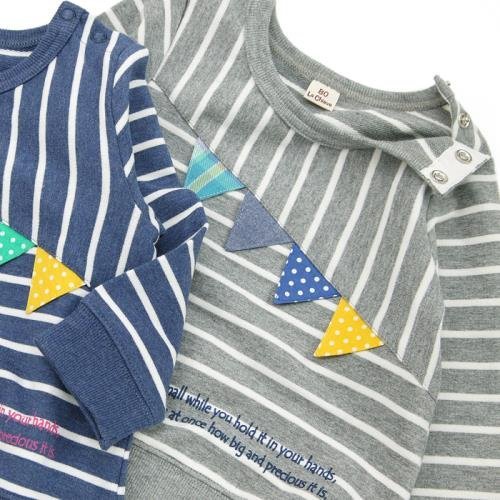 みんな大好きなボーダー柄☆プラス、斜めの切替&カラフルなフラッグはこだわりが詰まったデザインポイント♪男の子にも女の子にもオススメのオシャレ可愛いトレーナー☆