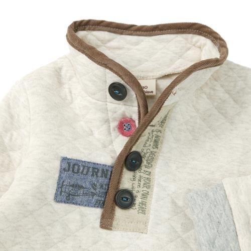 保温性あるニットキルトのトレーナーは冬の定番アイテム♪ハイネックで首元が暖かく、釦を外して衿を折ってもオシャレ!!配色のパイピングや前立ての飾り布がアクセントに☆