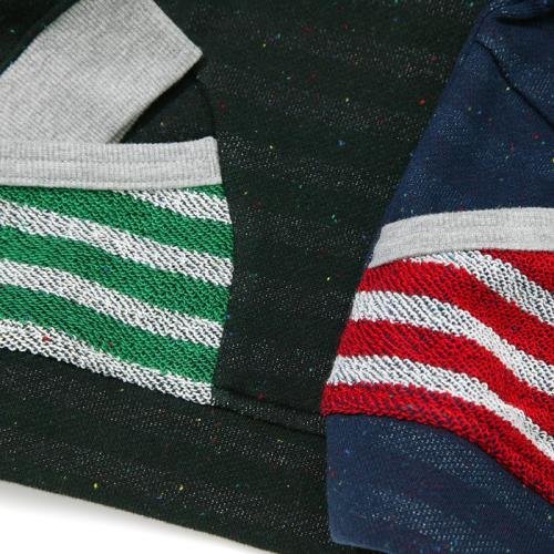- 素材:本体/綿75%・ポリエステル25% 表衿・袖口・ポケット口部分/綿57%・ポリエステル38%・ポリウレタン5% ネップ裏ボーダー裏毛×スパンテレコ