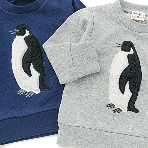 ☆大人気!mother goose動物シリーズ☆シンプルトレーナーに、かわいいペンギンがドーン☆立体感のあるボアのアップリケで、見て触って楽しいデイリーアイテム♪ベビーとのおそろいコーデも◎