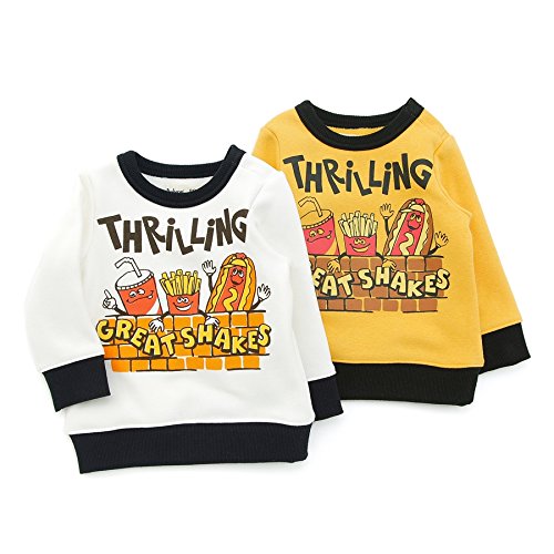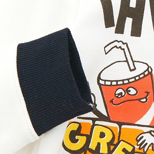 ジャンクフードプリントがドドーンと入ったトレーナーはインパクト抜群!!汚れやすい袖口や裾を濃色にすることで冬の外遊びだってママも安心☆良く伸びる生地だから着心地もとってもGOODです!