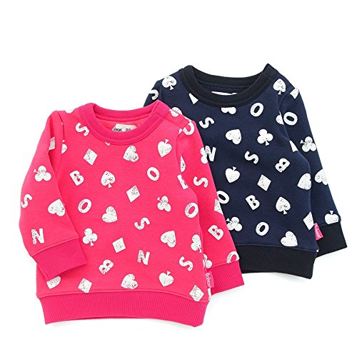 元気な総柄プリントのトレーナーは伸縮性抜群のふわっふわ裏起毛生地で寒い冬も安心あったか!!トランプ柄とロゴ柄がMIXされた柄は元気ガールにぴったりです♪