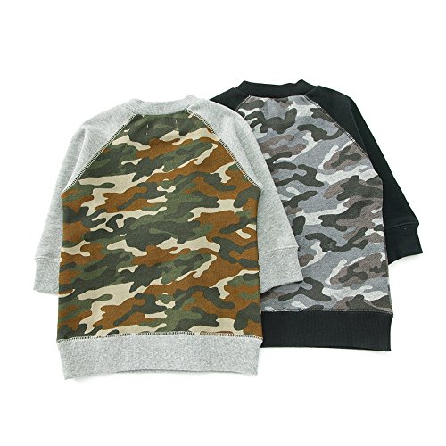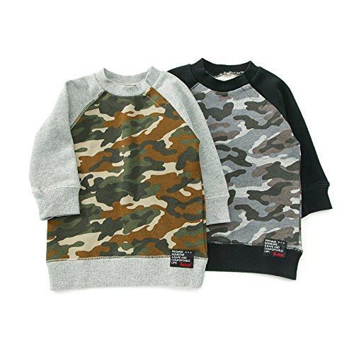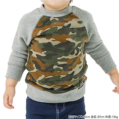 迷彩柄のカジュアルなラグラントレーナー!クールなコーディネートにぴったり、と大人気の一品♪柔らかくて優しい裏毛生地が嬉しい~元気キッズにオススメのアイテムに仕上がりました(*^^*)