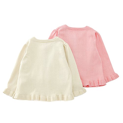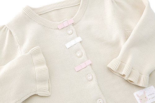 ちびリボンと裾のフリルが女の子らしいキュートなニットカーディガン♪ ワンピースやチュニックに合わせてラブリーなお出かけスタイルに♪ デイリーなTシャツとのコーディネートに合わせても可愛い(*^^*)☆ 肌寒い時の体温調整にも大活躍なアイテムです◎
