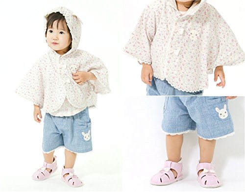 さわやかな天竺素材にラブリーな小花柄のうさみみケープ♪フードのうさみみにリボンやレース…♪女の子らしさがぎゅっと詰まったアイテムです♪夏の冷房や日よけ対策に便利でおすすめ♪