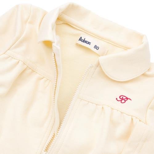 シンプルなジップアップカーディガンは女の子らしいかわいい衿の形やレース使い、ヨーク切替えのギャザーなどスポーティになりすぎないように工夫しました♪デイリーに羽織れる気軽さと、ポケット付きも嬉しい技ありのアイテム☆