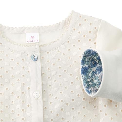- 素材:本体/綿95%・ポリウレタン5% 衿ぐり・裾布・前立布/綿100% レース/綿100% 合皮ネーム/合成皮革 ローンレース×ドビークロス