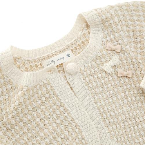 胸元のリボンが可愛い、表情豊かに編み上げた柔らかなニット素材のボレロ♪発表会などフォーマルライクなシーンにもふさわしい一着★*.・