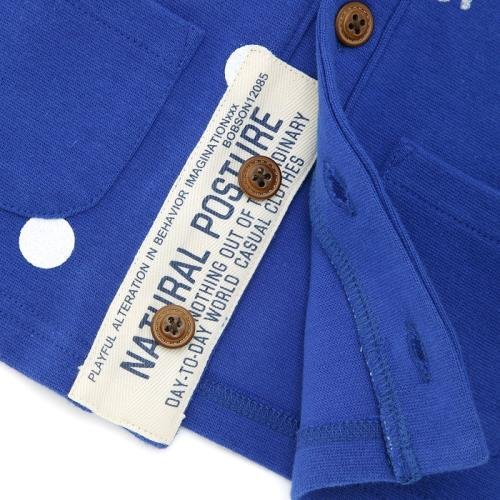 ネックラインのパッチワーク切替えや裾プリントチケット使い、右の前身頃だけドットプリントなど、形はシンプルながらもさりげないデザイン要素がいっぱいなカーディガン☆胸の刺しゅうもカッコイイ♪華やかカラーで、さっと羽織るだけでコーデのポイントになりますよ☆