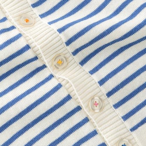 マリンボーダーが爽やかで軽快な春らしい横編みニットのカーディガンです☆シンプルデザインはキレイ目スタイルにもオススメなので、お出掛けコーデにもピッタリ♪