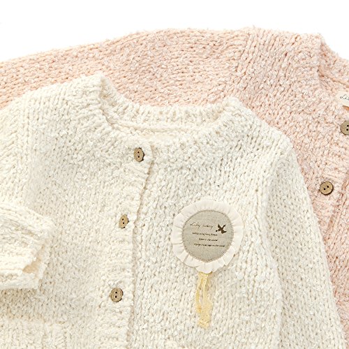 もこもこあったかなニットカーディガン♪胸元のワッペンでおしゃれかつ可愛く演出。オフホワイトとピンクの2色をご用意しました。
