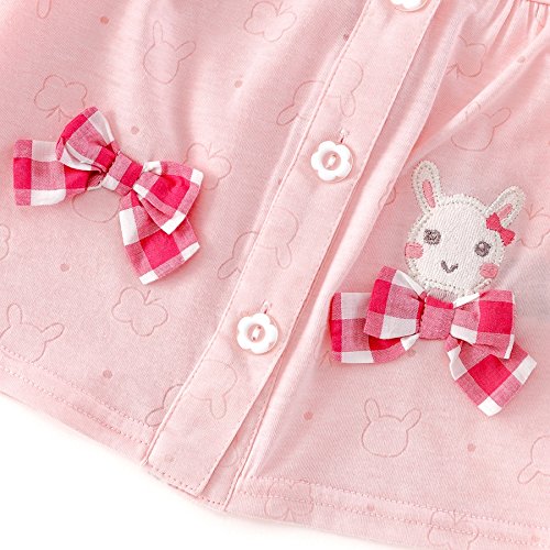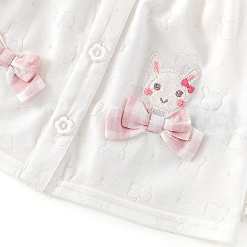 うさぎちゃんの可愛い透かし柄が涼しげなカーディガン♪フリルやギンガムチェックのリボンが女の子らしい雰囲気♪夏の冷房や日よけ対策にも重宝します♪持っているとなにかと便利なアイテムです☆