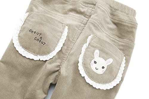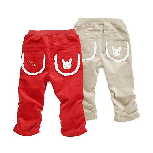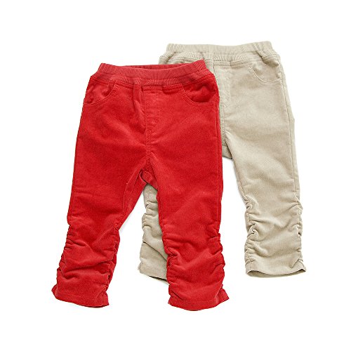 ストレッチ入りコール天の長丈パンツ♪カラーは、コーデのアクセントになるレッドと合わせやすさ◎なベージュ♪キュートなシルエットに裾のくしゅくしゅデザインやおしりのポケットのふりふりレースがポイント♪