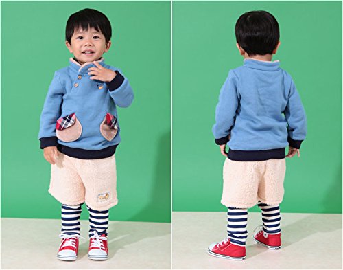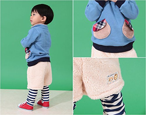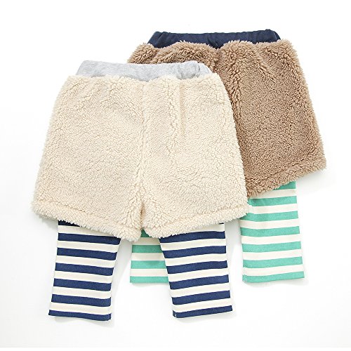 おしゃれな雰囲気のレイヤード風パンツ☆ショートパンツ部分はボア素材でとてもあたたか♪動きやすいのもベビーに嬉しいポイント☆ボーダー使いもベーシックで合わせやすいね♪