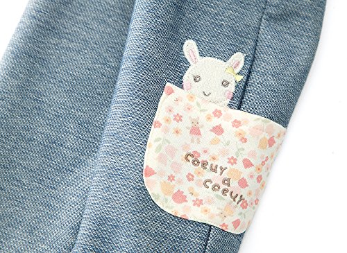 はきやすくて合わせやすい人気のデニムニット素材の長丈パンツ♪ ポケットと裾の折り返しに使ったチューリップ柄が春らしい☆.。.:*・° ポケットからぴょんとのぞくうさぎちゃんがとってもラブリーです(*^^*)