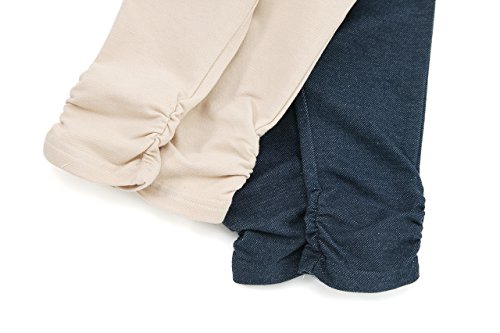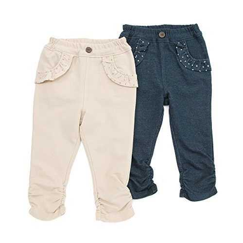 くしゅくしゅの足元とポケット口のフリル使いが女の子らしいパンツ*。♪伸縮性のあるデニムニット素材で動きやすくすっきりとしたシルエットも魅力゚☆*。使いやすいカラーの2色展開*・゚