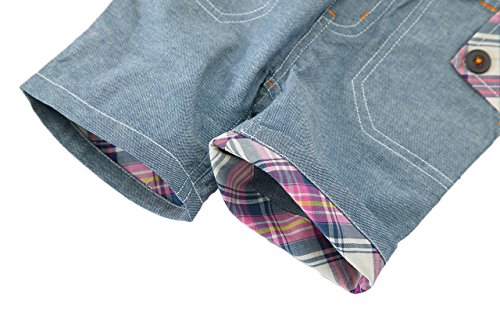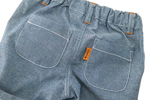 サラッと爽やかな肌触りなのに、丈夫でお手入れしやすいダンガリー素材のハーフパンツ☆ 配色ステッチや裾の折り返し、ポケットのチェックなど、ベーシックなのにしっかりオシャレ感を主張した一着です☆