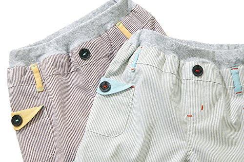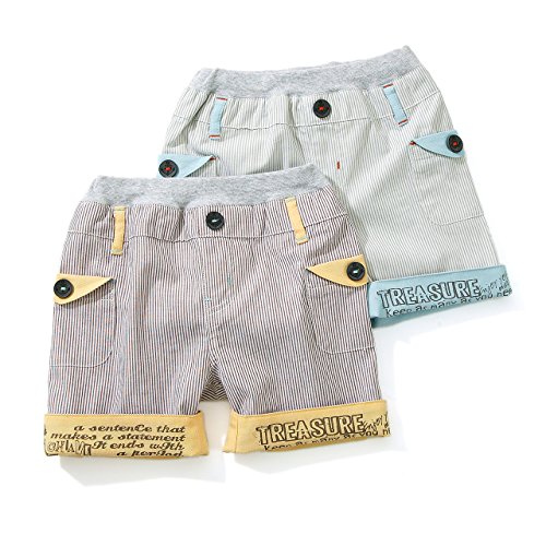 ストライプ柄が爽やかで少しワークテイストなデザインのパンツです♪通気性に優れ、涼しい上に丈夫!取り扱いの簡単な素材を使用しました。裾裏のプリント柄でロールアップしてもかわいくはけちゃいます☆
