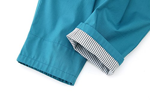 夏らしい薄手の素材なのにしっかり丈夫☆ ストレッチ素材なのではき心地も抜群です☆ 夏らしい鮮やかなターコイズブルーとカラシ色のパンツはコーディネートのアクセントになること間違いなし♪ 裾口を折り返すとボーダー柄が見えてオシャレ感UP♪+゚☆*。