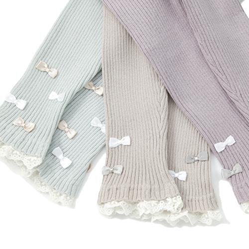 伸縮性に優れ、はき心地も抜群なニットレギンス゚☆*。裾にいっぱいのリボンがキュートです*。♪ワンピースとの相性ピッタリ*・゚ガーリースタイルに大活躍のアイテムです゚☆*。