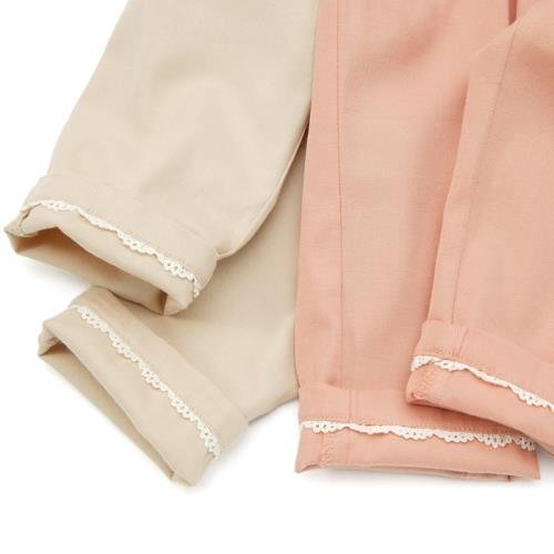 軽めの素材感ではきやすいパンツ*。♪ところどころにちりばめた、さりげないレース使いが女の子らしいデザインです゚☆*。シンプルで合わせやすいのもおすすめポイント*。♪