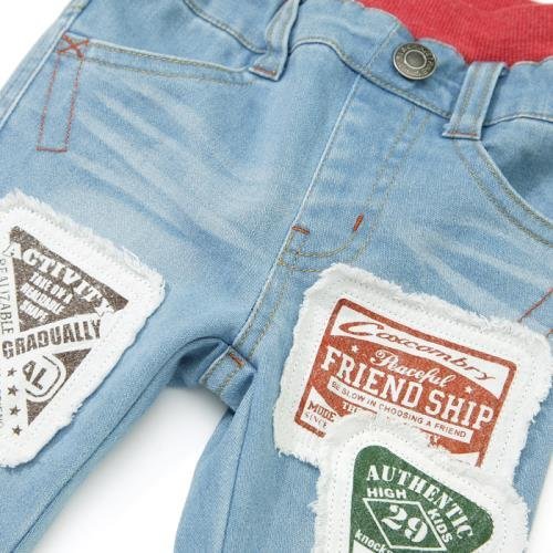 デイリーにガンガン活躍してもヘッチャラな丈夫なデニムで仕立てました♪丈夫なのに伸縮性に優れているのではき心地は楽チンです♪プリントパッチをペタペタ貼り付けたカッコいいアメカジ風ジーンズです。